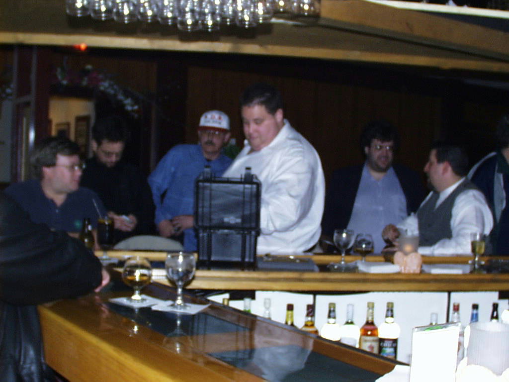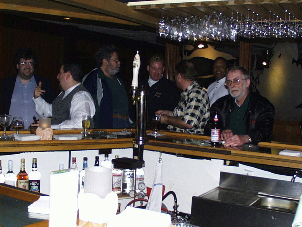Ross Poppel, David Trinidad, Peter Secor, Bruce Kramer, Eric Holtman, David Fruchter hold down the Top of the Trop bar.