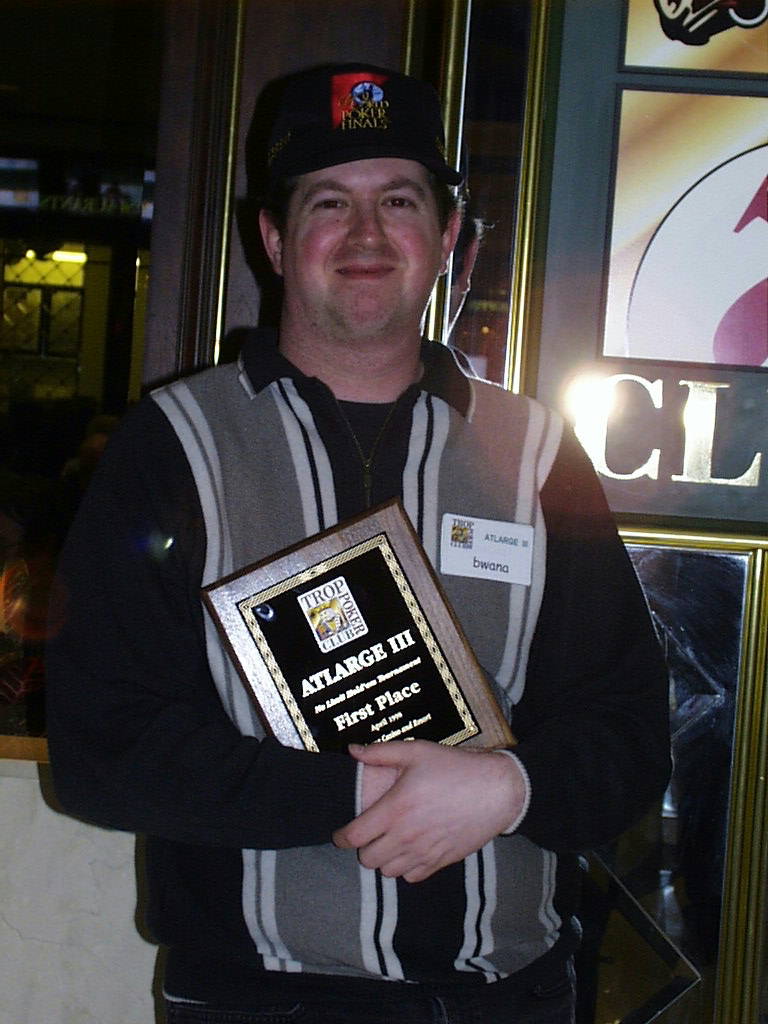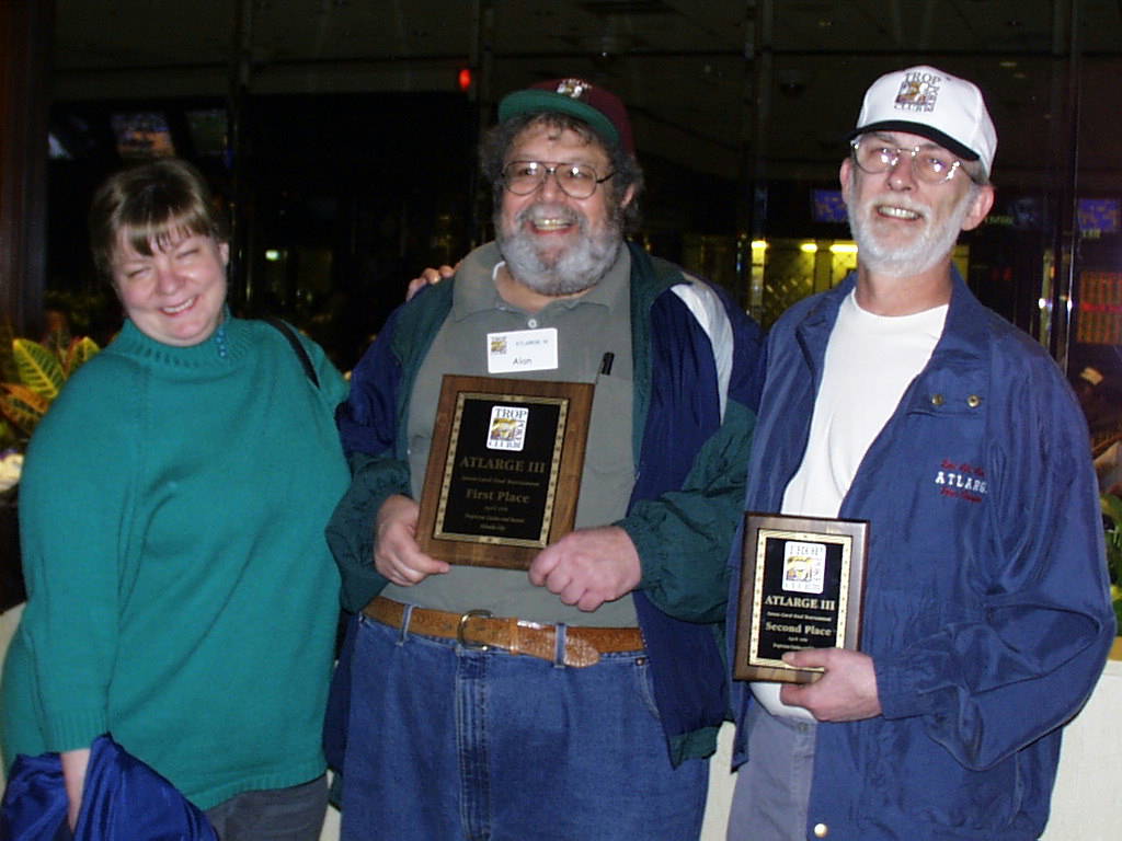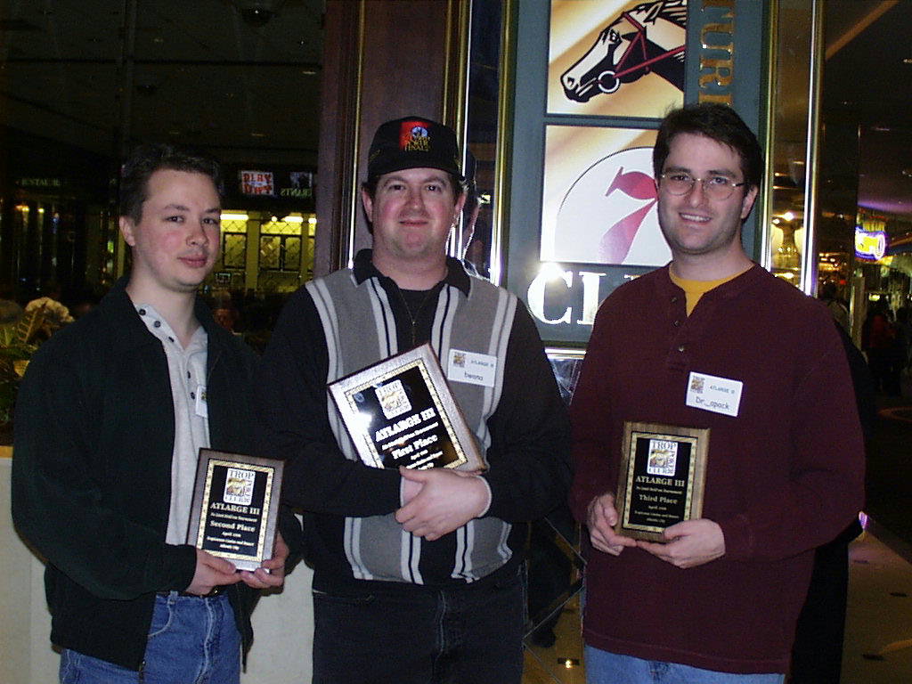Tom (3rd Place), Scott (1st Place) and Aaron (2nd Place) display the handsome trophies provided by the Trop.
