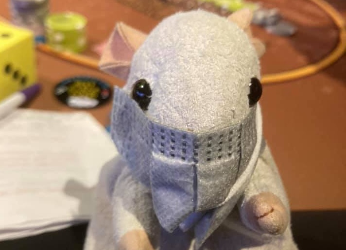 Cover image: Gambomouse, out of quarantine. Cool custom mask by Jeanne. Picture by Ken Kubey.