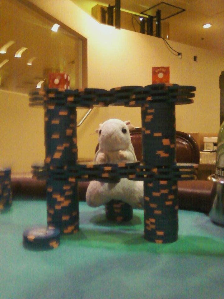 The female dealers all seemed to love the mouse. One dealer kept trying to deal my cards into the two-chip wide space in the structure. Omaha round… she gets three straight cards in the goal. Mandatory $1 tip for that.