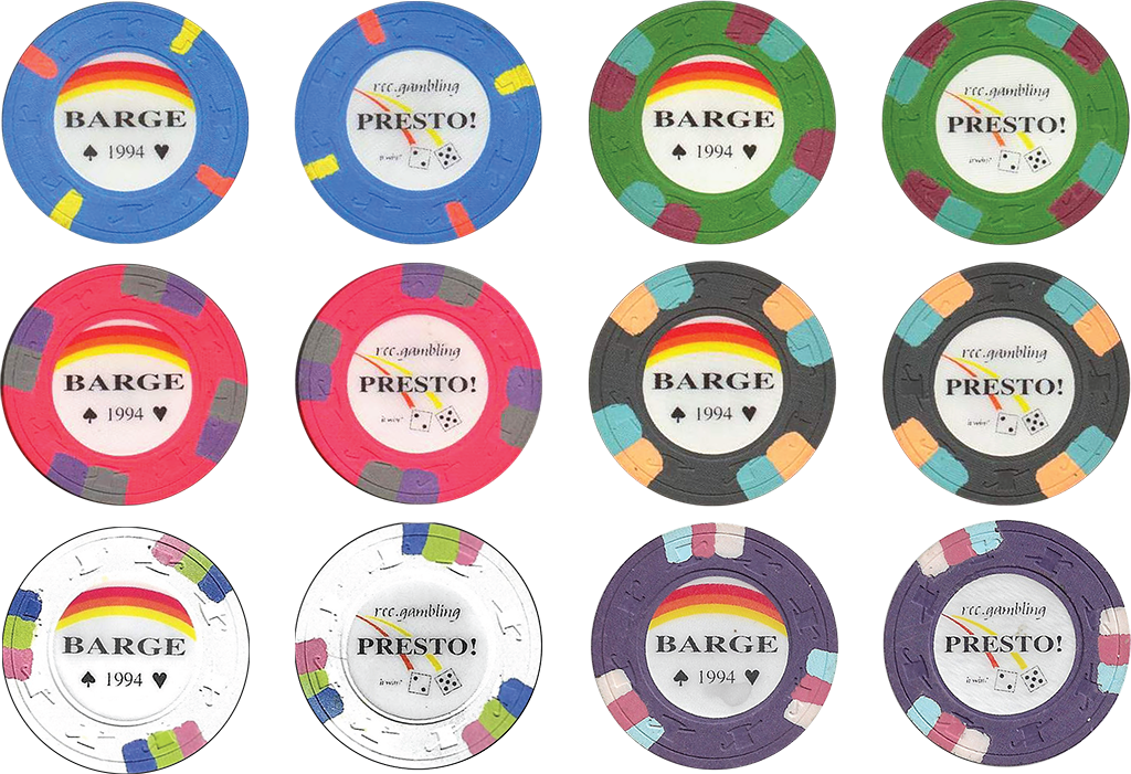 Your white BARGE 1994 chip is a bit of a mystery. […] There was someone who ordered a full usable set of several hundred chips. My best guess is that I allowed them to choose whatever colors they wanted and the chip you have somehow comes from that set.