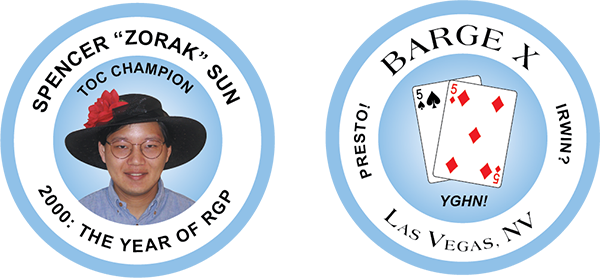 These chips celebrate two RGPers: Spencer “Zorak” Sun and Chris “Jesus” Ferguson, who both won major tournaments in 2000.