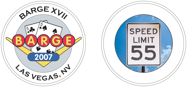 This year, the theme is “Presto in Everyday Life.” Each chip in the chip set has a common obverse with a different image of some form of “55” for each face. Standard chip colors are used.