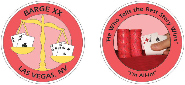 This theme is “Poker Archetypes.” Each chip has a common obverse showing the scales of justice weighing Presto! against Aces. BARGE 2009 Champion, David “Heldar” Heller, came up with the theme.